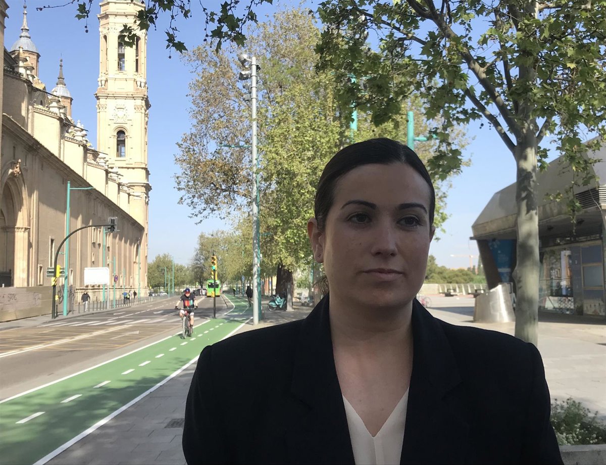 La consejera municipal de Movilidad y Medioambiente del Ayuntamiento de Zaragoza, Tatiana Gaudes, al lado del carril-bici de paseo Echegaray y Caballero - EUROPA PRESS
