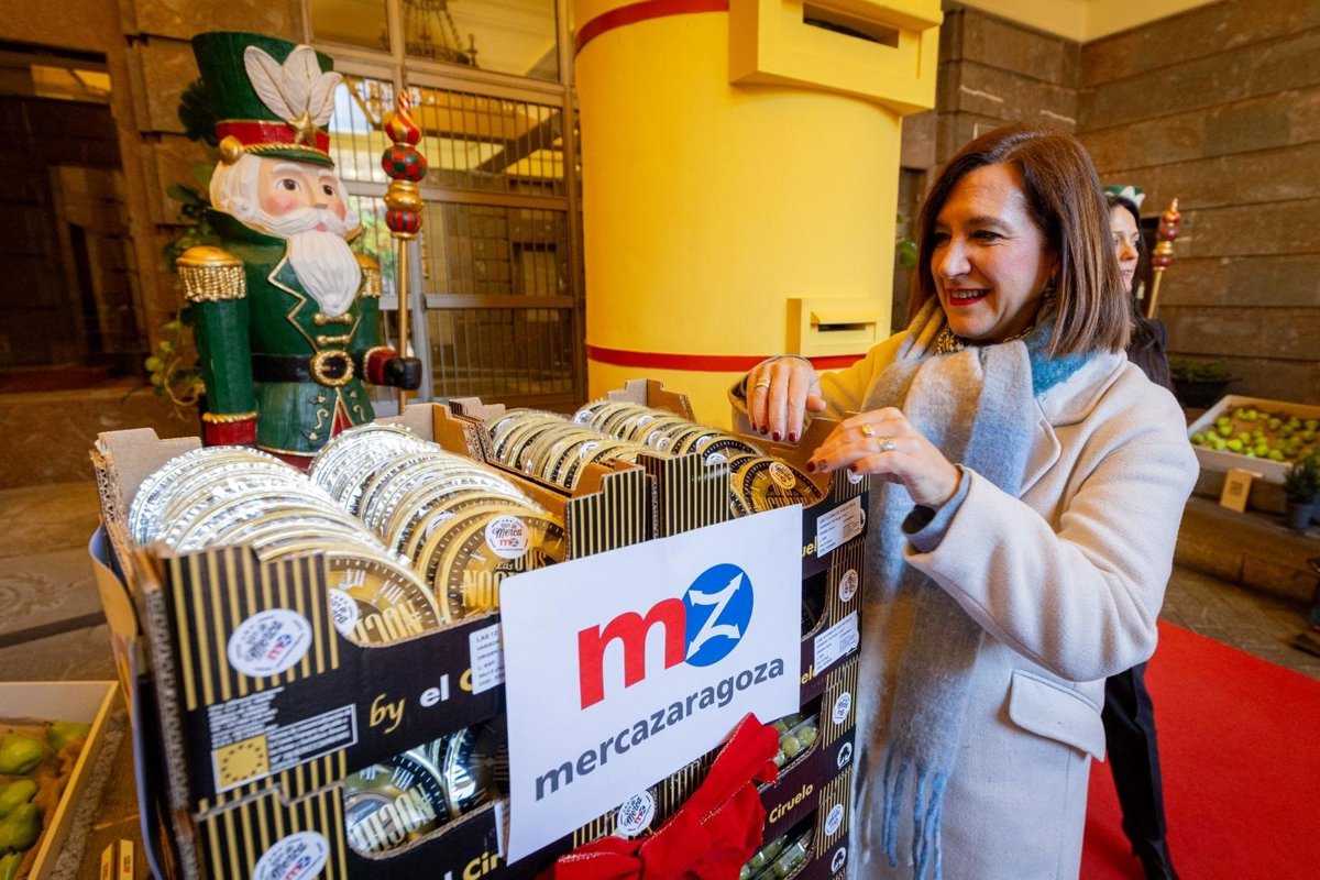 La consejera municipal de Cultura, Educación y Turismo, Sara Fernández, ha recibido este lunes el envío de 3.000 cajas, cada una con doce uvas, donadas por Mercazaragoza para la celebración de Nochevieja en la plaza del Pilar.
