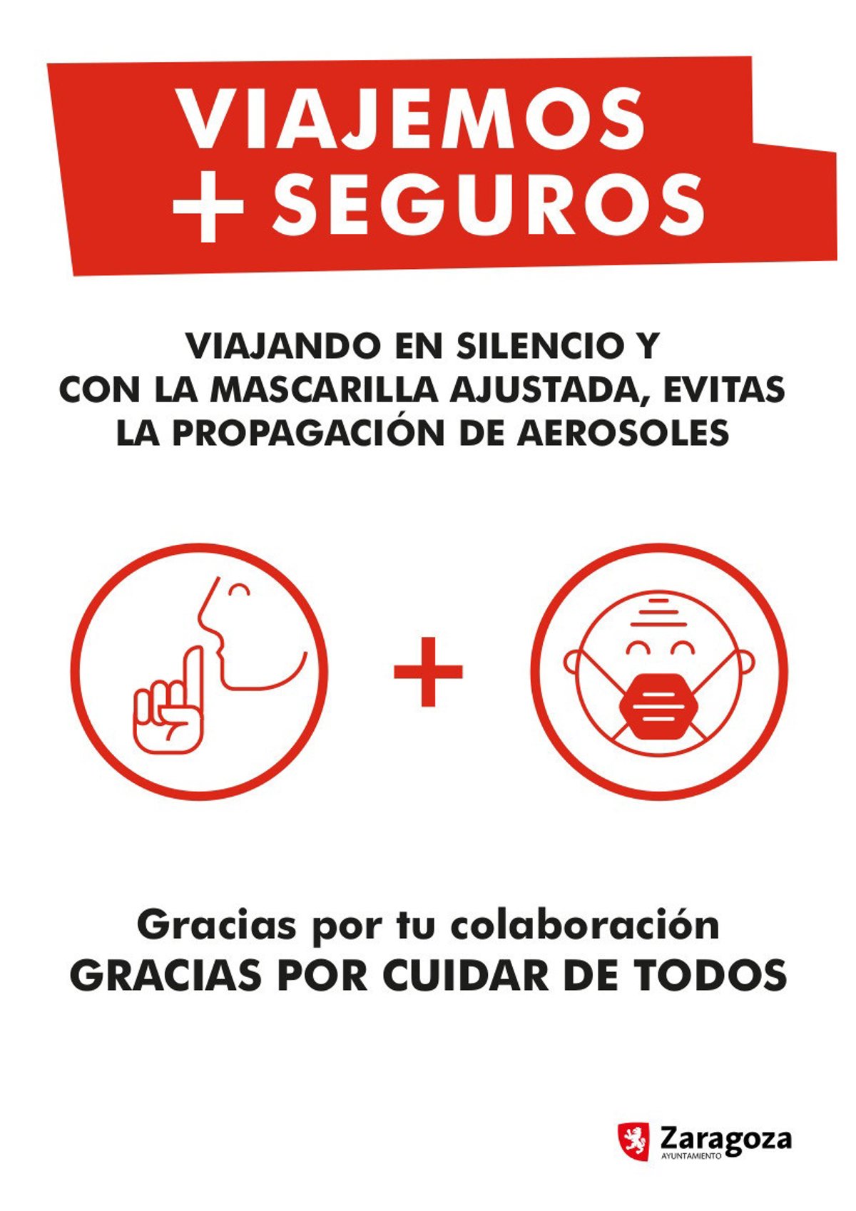 El Ayuntamiento de Zaragoza recomienda a los usuarios del transporte público viajar con la mascarilla bien ajustada y en silencio para limitar al máximo la propagación de los aerosoles en estos espacios, tal y como recomienda los recientes estudios científicos para minimizar las vías de contagio de coronavirus.