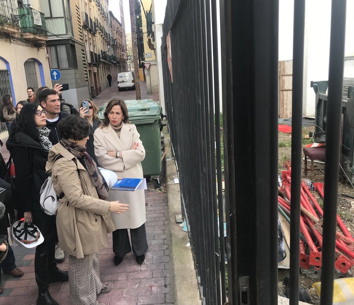La alcaldesa de Zaragoza, Natalia Chueca, visita el solar de la calle Pignatelli 76-78 donde se levantará un edificio de viviendas de alquiler asequible - EUROPA PRESS