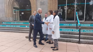 Azcón ha llegado al centro hospitalario, donde están ingresados los dos heridos, en torno a las 12.15 horas, acompañado del consejero de Sanidad del Gobierno de Aragón, José Luis Bancalero, y ambos han sido recibidos por el equipo directivo del hospital.