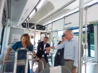 Jorge Azcón y Natalia Chueca presentan el nuevo 'ie tram', el primero de los 68 autobuses 100% eléctricos - EUROPA PRESS