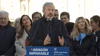 El candidato de los populares ha hecho estas declaraciones durante una comparecencia celebrada en la plaza del Pilar de Zaragoza rodeado de los componentes de su lista electoral, y flanqueado por la vicepresidenta del Gobierno autonómico y número dos de la lista, Mar Vaquero, y la alcaldesa de Zaragoza, Natalia Chueca.