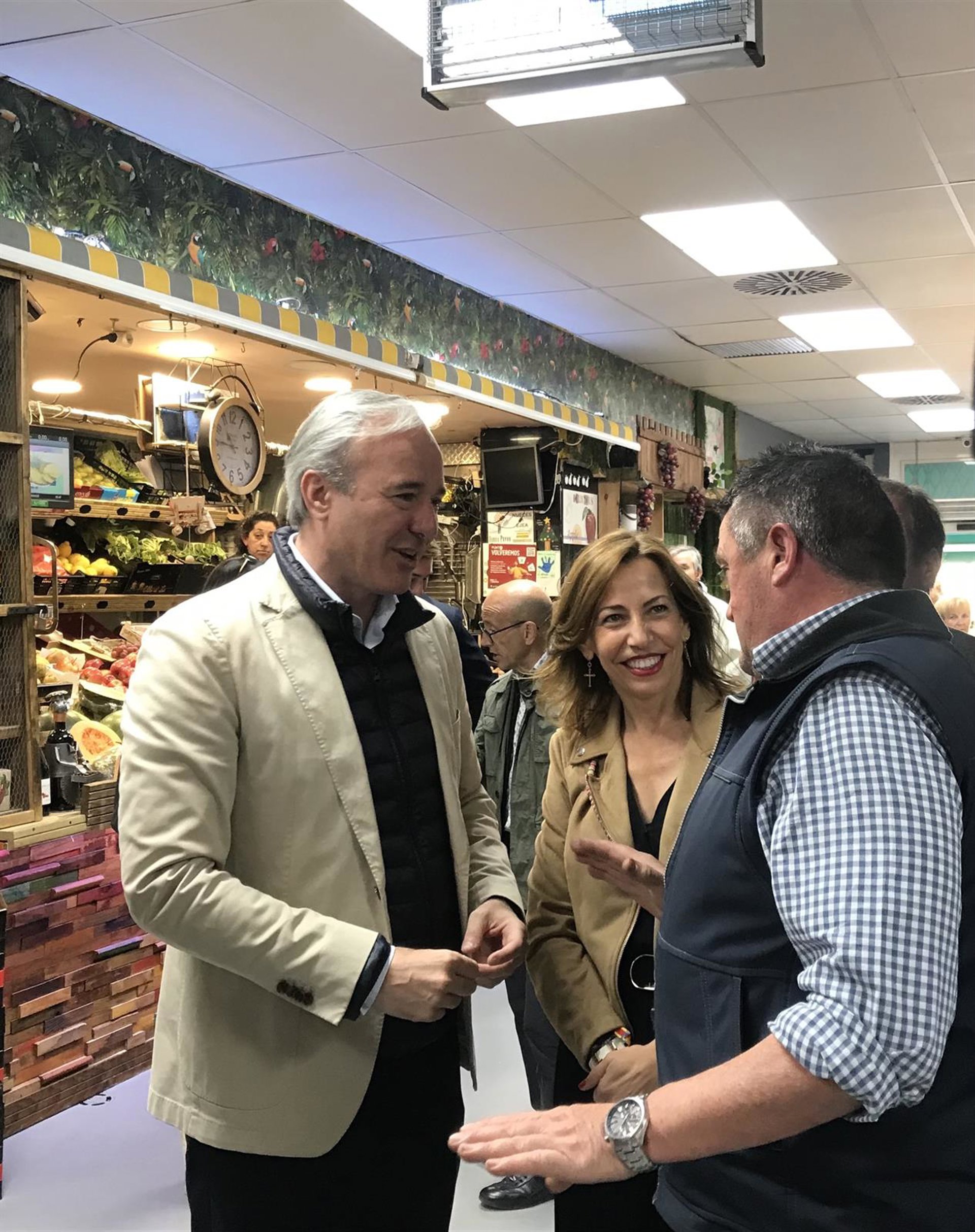 El candidato del Partido Popular (PP) a la Presidencia del Gobierno de Aragón, Jorge Azcón, en un mercado - EUROPA PRESS