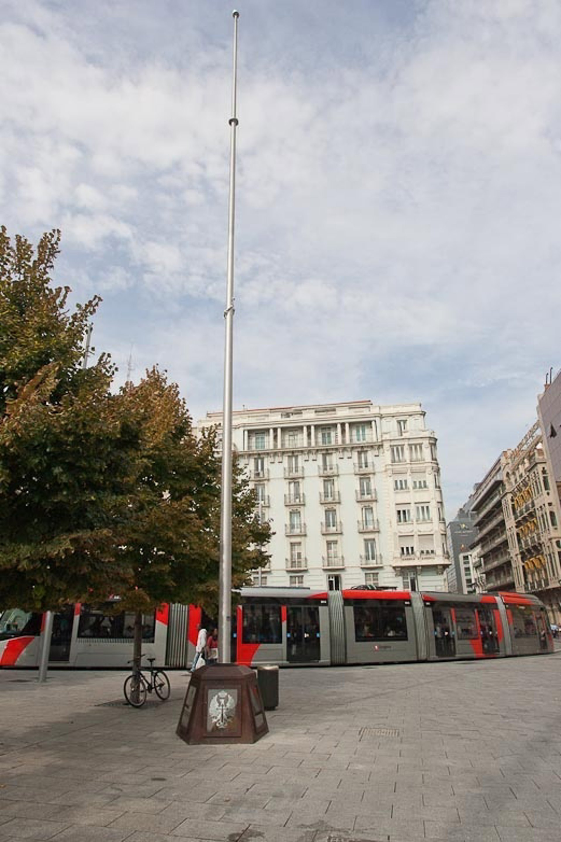 El pináculo es giratorio para evitar que la bandera se enrede y la cuerda para el izado va por el interior del mástil. Las dimensiones de la bandera que irá en el mástil son de 6 por 4 metros, han precisado desde el Ayuntamiento de Zaragoza.