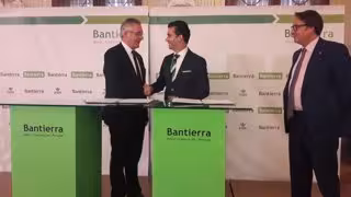 El acuerdo de adhesión ha sido suscrito por el consejero de Desarrollo Rural y Sostenibilidad, Joaquín Olona, y el director general de Bantierra, Luis Ignacio Lucas Domínguez, en el Edificio Bantierra de Zaragoza.