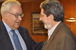 Barrena se ha entrevistado con el presidente del Parlamento autónomo, José Ángel Biel, con motivo de la ronda de contactos con los Grupos Parlamentarios de cara a la investidura de la nueva presidenta del Ejecutivo regional, la popular Luisa Fernanda Rudi.