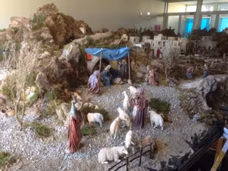 El hall del espacio Multiusos del Centro de Congresos se convierte así durante un mes en el escenario de este belén de gran formato en el que pueden encontrarse todo tipo de figuras navideñas, recreando diferentes imágenes, colocadas sobre una plataforma de grandes dimensiones.