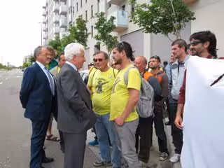 Belloch ha sido recibido este jueves con gritos y una sonora pitada de un grupo de trabajadores de parques y jardines de la ciudad que lo esperaban ante la Residencia de Mayores 'Fundaz Santa Bárbara', donde el alcalde ha asistido a la inauguración del centro situado en el barrio de Valdespartera.