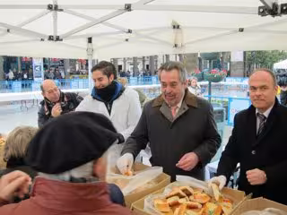 Desde hace 14 años, el Periódico de Aragón patrocina esta iniciativa en la que se reparte un roscón de 1.300 kilos entre la ciudadanía y en la que participa el alcalde de Zaragoza.