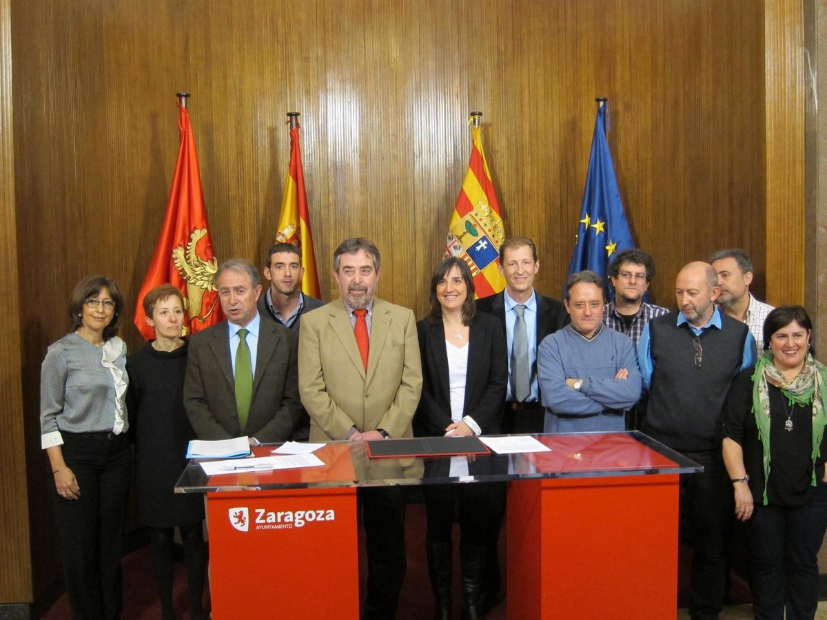 Belloch y los representantes sindicales municipales de CSL, CCOO, UGT y CSI-F, han suscrito este viernes el Pacto-Convenio que tendrá una vigencia de cuatro años, y que se tendrá que aprobar por el Gobierno de Zaragoza para su posterior ratificación ante el Pleno.