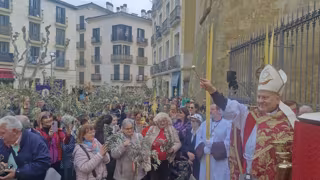 Cientos de oscenses han acompañado en la mañana del Domingo de Ramos a la procesión de la Entrada de Jesús en Jerusalén, con la que ha dado comienzo la Semana Santa en la ciudad. Antes, el administrador apostólico de la diócesis de Huesca, monseñor Vicente Jiménez Zamora, ha bendecido los ramos en la plaza de San Pedro. Las cofradías de Huesca han acompañado el paso encabezado por la Cofradía de San José y Santa Ana con los niños y niñas vestidos de hebreos.