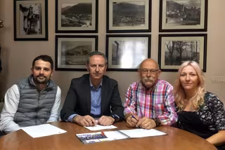 El alcalde de Biescas, Luis Estaún, la Peña Ciclista Edelweiss y la empresa Octagon han firmado este viernes el convenio por el que la localidad oscense acogerá, los próximos 22 Y 23 de abril, la VI Edición de la QH MTB, de esta manera será el cuarto año consecutivo en que esta prueba deportiva hermana de la Quebrantahuesos (QH) de carretera se desarrollara en Biescas.