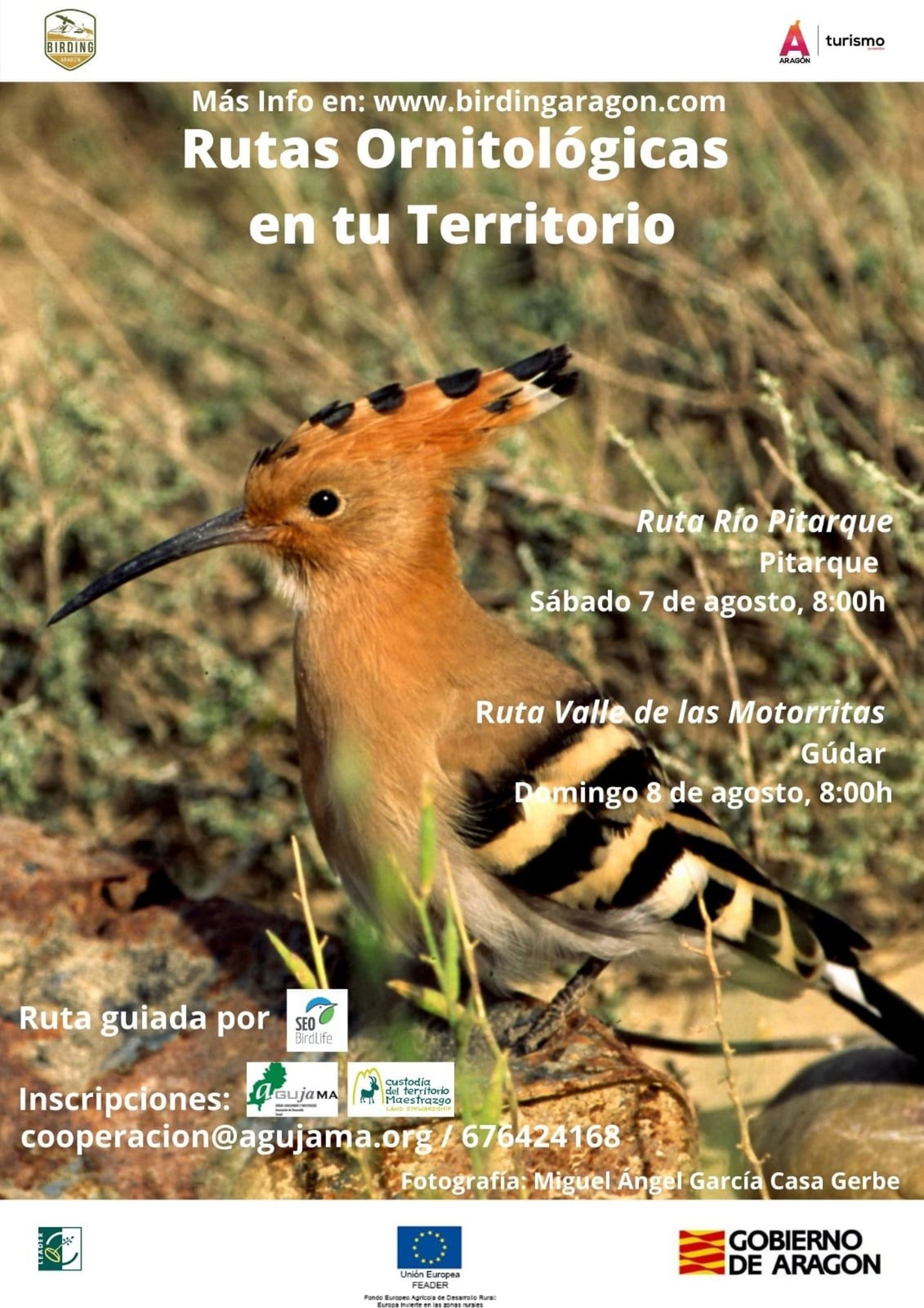 Birding Aragón realiza dos rutas ornitológicas los días 7 y 8 de agosto para la observación de aves en las Comarcas de Maestrazgo y Gúdar-Javalambre. A través de estos dos recorridos, dirigidos a todos los públicos, se pretende incentivar al mundo rural para que valore las posibilidades de la ornitología como recurso turístico, además de como afición, al tiempo que se busca sensibilizar a la población con su entorno natural.