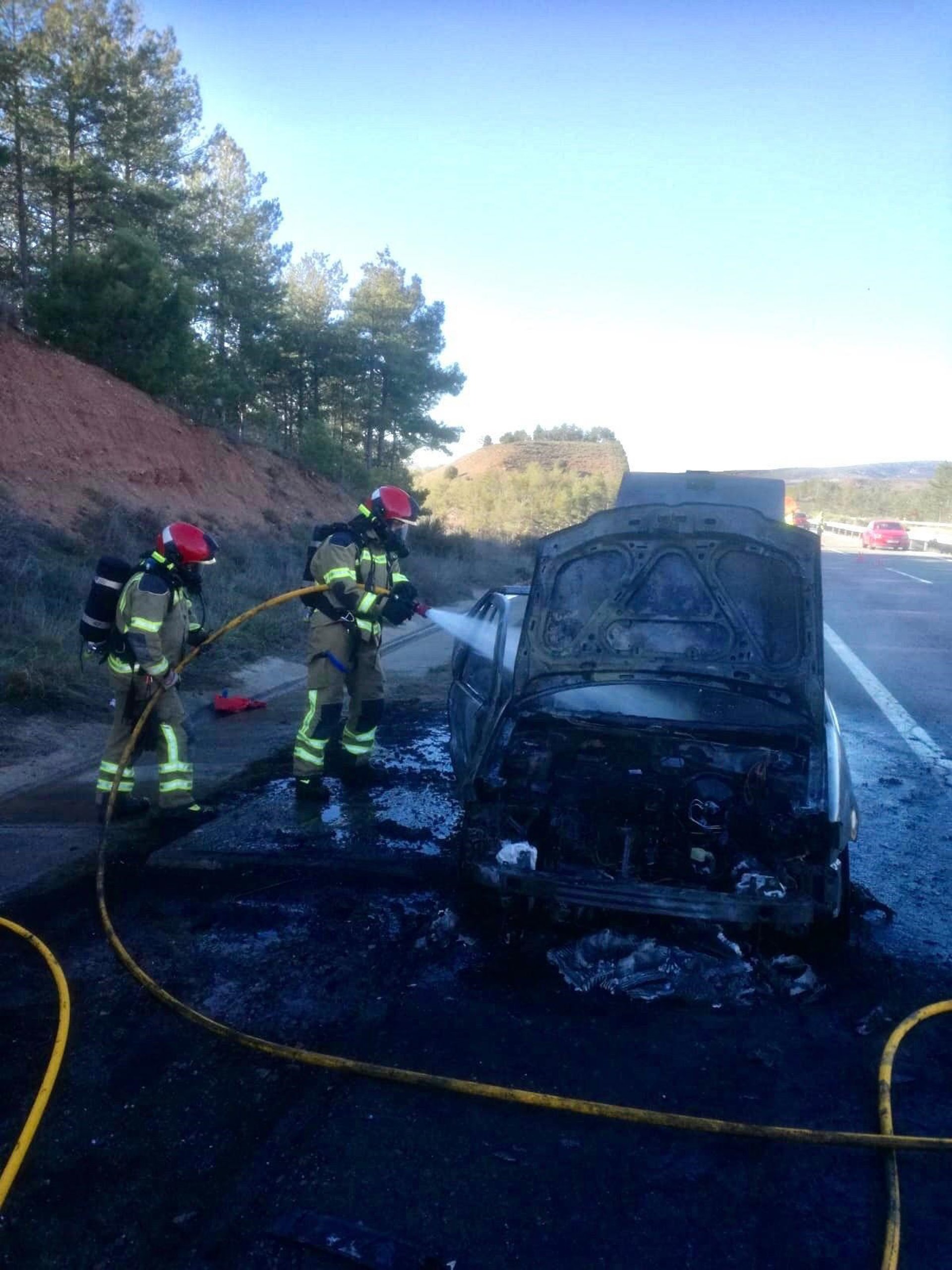 Efectivos de Bomberos del Parque de Teruel de la Diputación Provincial (DPT) han sofocado un incendio que se ha producido en un coche que se encontraba en el kilómetro 105 de la A-23, en dirección a Valencia, según han informado fuentes de este cuerpo.
