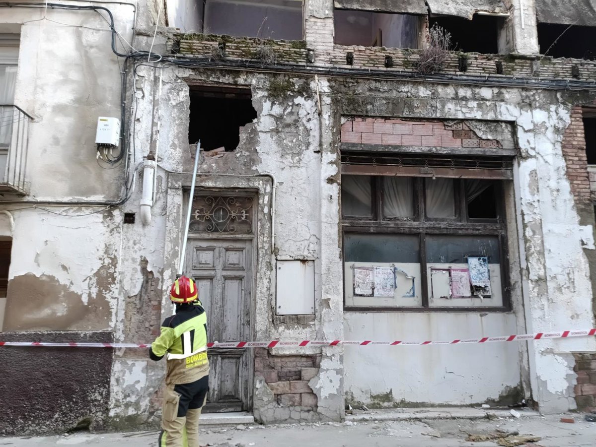 Bomberos de la DPT retiran cascotes de un edificio en Mora de Rubielos. - DPT