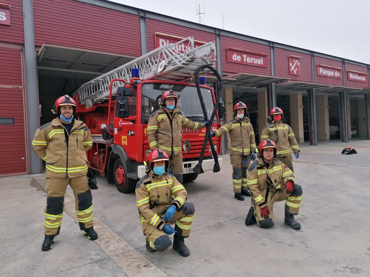 Los bomberos de la Diputación Provincial de Teruel (DPT) y del parque de Alcañiz han participado, este viernes, 10 de abril, en un acto de recuerdo y homenaje que los servicios de emergencia de la ciudad bajoaragonesa han realizado a los fallecidos por el coronavirus.