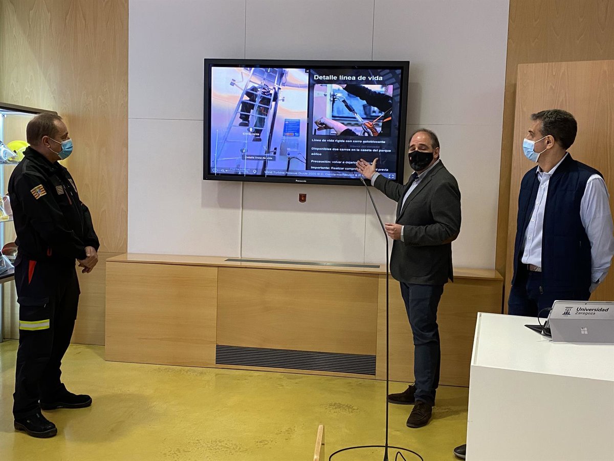 Mendoza ha explicado que los bomberos ya cuentan con una réplica, en fotografía 360 y vídeo, del interior de un aerogenerador situado en Acampo Hospital, en el término municipal de Zaragoza, donde han podido prepara la simulación de un rescate a un trabajador atrapado en el interior, conociendo las posibilidades y dificultades que ofrecería esta instalación para llevar a cabo el salvamento.