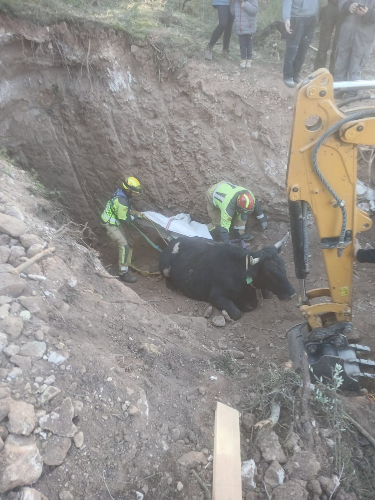 Los Bomberos de la Diputación Provincial de Teruel (DPT) han rescatado este viernes a una vaca que había quedado atrapada en una acequia bajo tierra en el municipio de Olba.