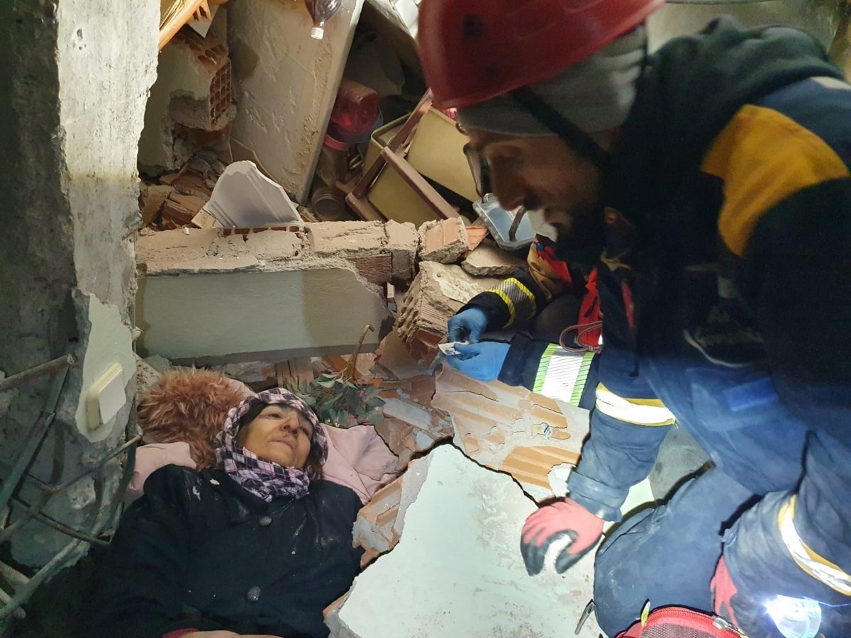 Un equipo de bomberos de Turquía y Zaragoza ha rescatado a una mujer, de unos 60 años de edad, que se encontraba atrapada, debido al terremoto, en los escombros de un hotel de la región de Gaziantep.