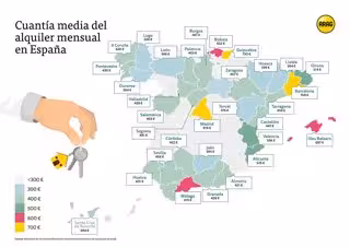 En cuanto a las otras provincias, rondan una media similar, desde los 556 euros mensuales de Valencia a los 401 euros de Huelva.