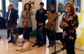 En el acto de conmemoración del 25 aniversario de esta fundación, se inauguraba la muestra '25 años caminando juntos', que puede visitarse hasta este sábado en el centro comercial Puerto Venecia de Zaragoza. En ella, se explica el trabajo y las diferentes etapas que atraviesa un perro hasta convertirse en guía de una persona ciega.