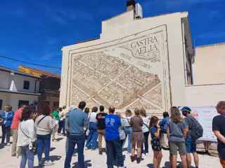 Este valor patrimonial se ha reflejado en el gran mural del artista Matteo Capobianco, quien ha reflejado algunos de los elementos descubiertos como la cúpula de las termas, un templete o un depósito de agua y los ha llevado a un plano imaginado pero fiel a los cánones urbanísticos de la época.
