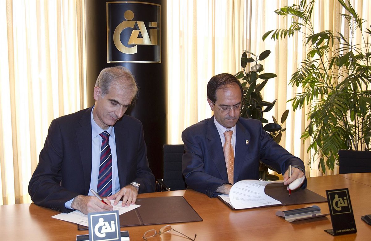 El presidente de Caja Inmaculada (CAI), Juan María Pemán, y el presidente de la Fundación DFA, Armando Carcas, han firmado un acuerdo por el que la Obra Social de CAI aporta 81.000 euros para comprar dos microbuses adaptados que reforzarán el servicio regular de transporte que facilita la fundación a personas con discapacidad.