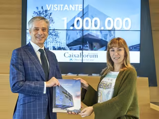 CaixaForum Zaragoza ha alcanzado este jueves el millón de visitantes desde su puesta en marcha en 2014. La zaragozana Marisa de Miguel Arnal se ha convertido en la visitante 1.000.000 que ha entrado en el centro cultural de la Obra Social 'la Caixa' en la ciudad.