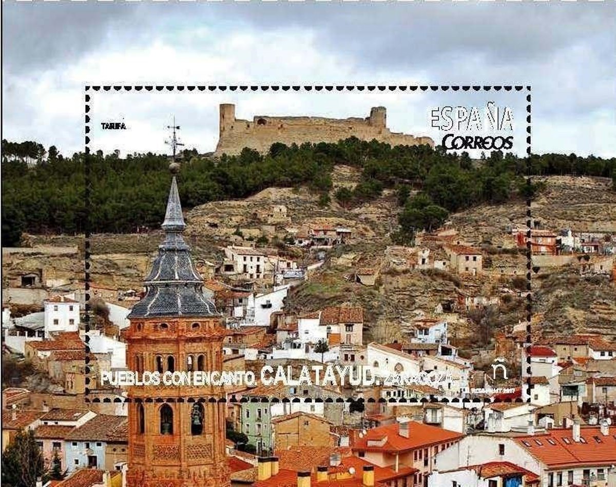 La inclusión de este sello en la serie de 'Pueblos con Encanto' coincide con el 50 aniversario de la declaración de este enclave como Conjunto Histórico Artístico. Heredera de la Celtiberia y de la romanizada Bílbilis, patria del epigramista Marco Valerio Marcial, la ciudad de Calatayud fue como tal fundada, según la tradición, por el emir Ayyub inb Aviv Lajmi en el año 716.