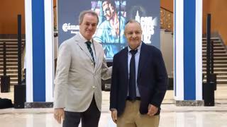 El presidente de la Cámara, Jorge Villarrroya, y su director general, José Miguel Sánchez, durante la presentación de la obra de reforma del edificio. - CÁMARA DE ZARAGOZA