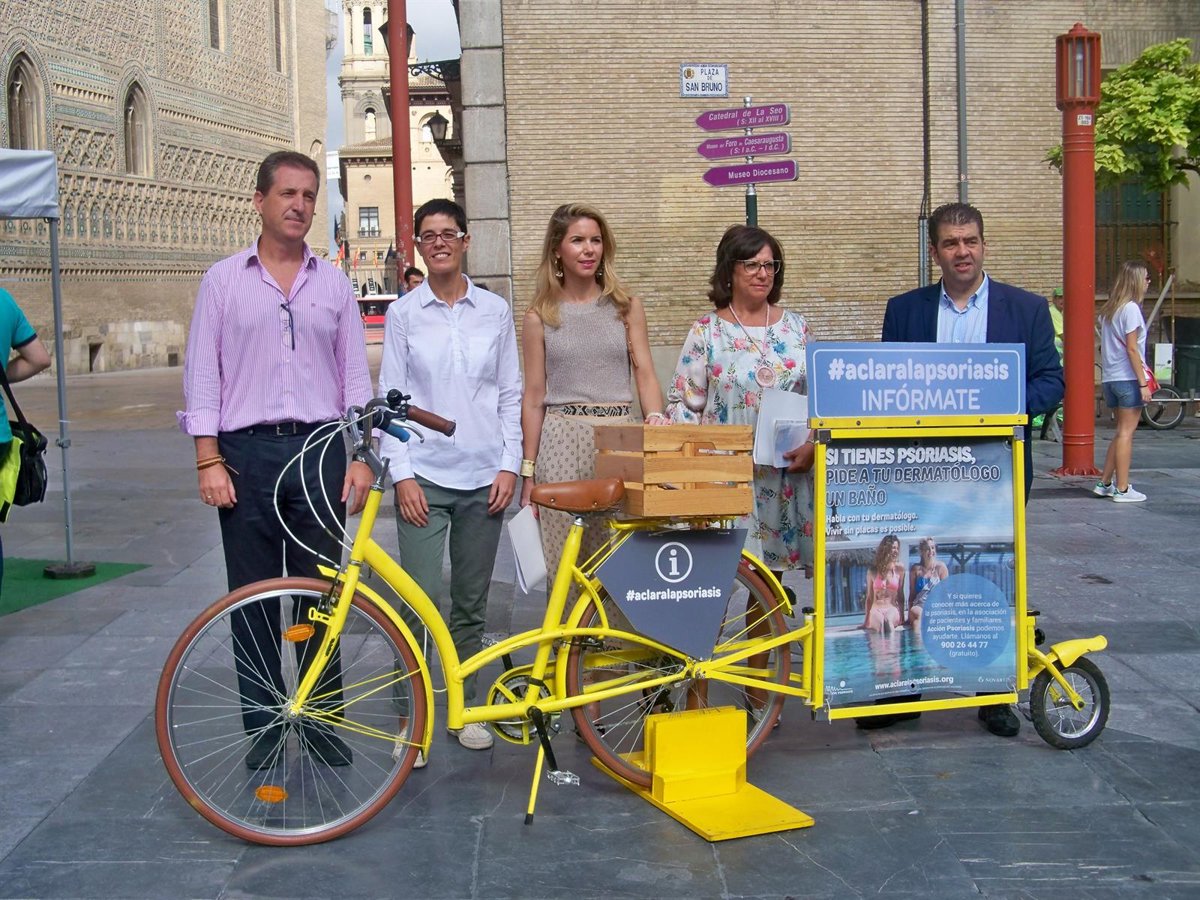 La campaña de concienciación y activación 'Aclara la psoriasis' ha llegado este martes, 29 de agosto, a la plaza San Bruno de la capital aragonesa, donde permanecerá hasta este sábado, 2 de septiembre. Esta iniciativa, llevada a cabo por Acción Psoriasis y la industria farmacéutica Novartis, pretende concienciar a los pacientes sobre el control de los síntomas y sensibilizar a la población en general del impacto social y psicológico de la psoriasis.