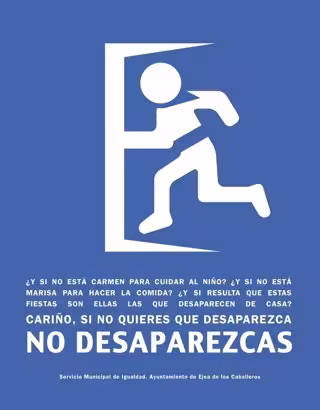 Las actuaciones que se han llevado a cabo para esta campaña de sensibilización, son el diseño y la valoración de la imagen y el mensaje clave de la campaña. Se trata de un mensaje gráfico, claro y directo, obra de la ejeana Isabel González en el que se representa a un hombre ataviado de ejeano, huyendo de casa.