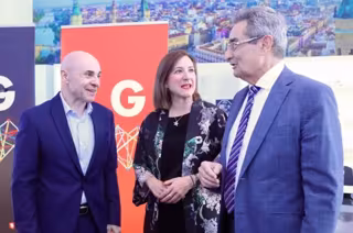 La consejera municipal de Cultura, Educación y Turismo, Sara Fernández, junto al gerente del patronato municipal Zaragoza Turismo, José Francisco García, y el portavoz de VOX, Julio Calvo, en la presentación de la campaña de pormoción realizada en mayo. - DANIEL MARCOS