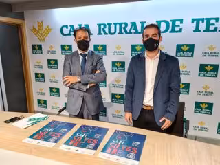 El concejal de Deportes del Ayuntamiento de Teruel, Carlos Aranda, y el jefe de la zona Alto Teruel de Caja Rural de Teruel, Juan Mangas, presentan la XXX edición de la carrera San Silvestre. - AYUNTAMIENTO DE TERUEL