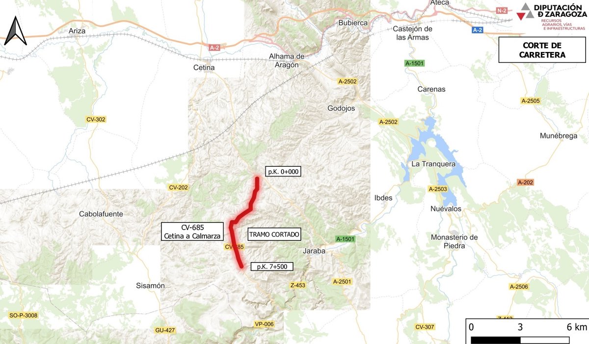 La carretera provincial que conecta Cetina y Calmarza, la CV-685, quedará cortada al tráfico a partir de este lunes, 24 de octubre, y se estima que permanezca así durante un mes.