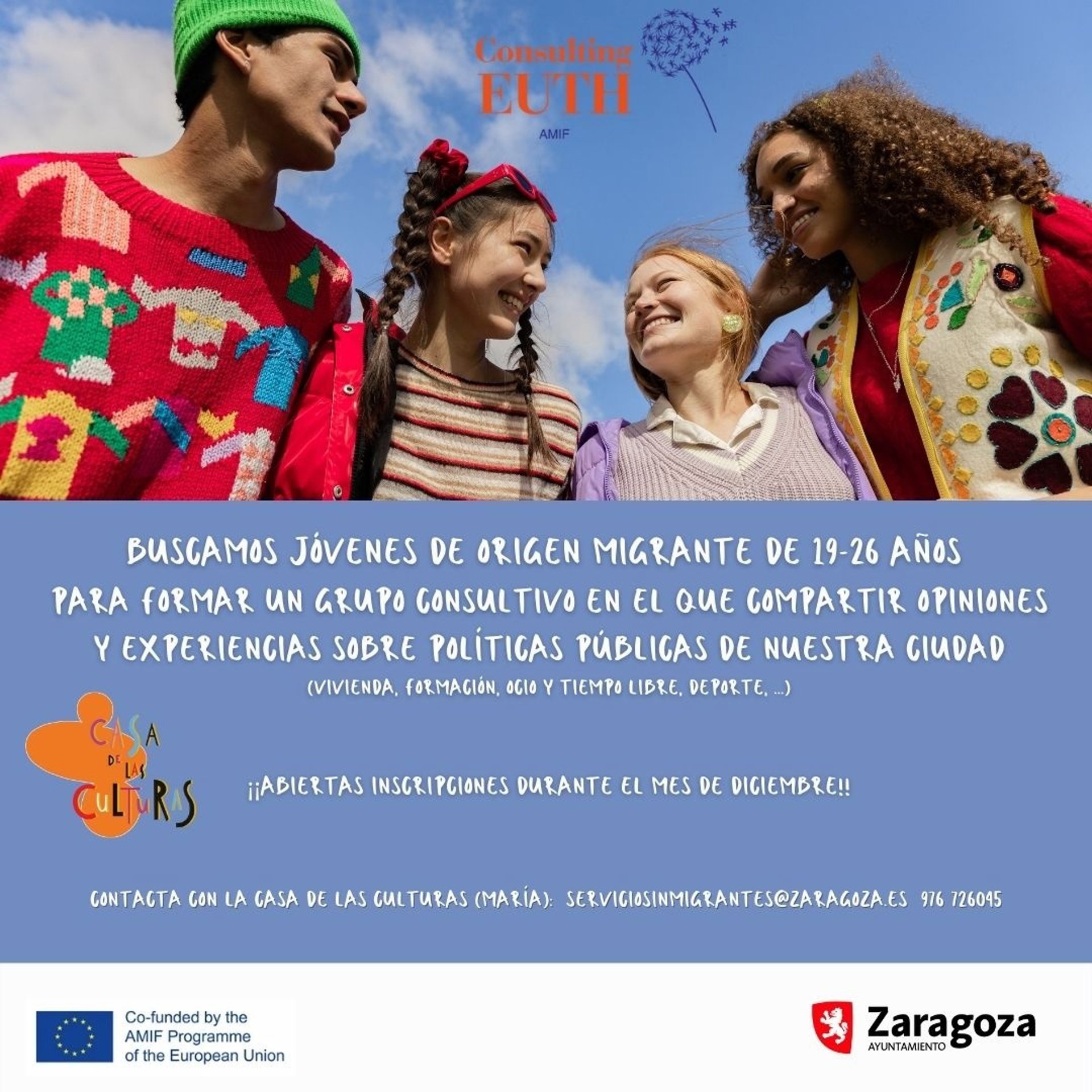 Alineado con ese mismo objetivo de participación juvenil, también se presentará al público el proyecto europeo en el que participa la Casa de las Culturas, 'Consulting Euth', financiado por el Fondo de Asilo, Migración e Integración de la Comisión Europea, que persigue la implicación en políticas públicas del colectivo migrante de jóvenes, han indicado desde el Ayuntamiento de Zaragoza.