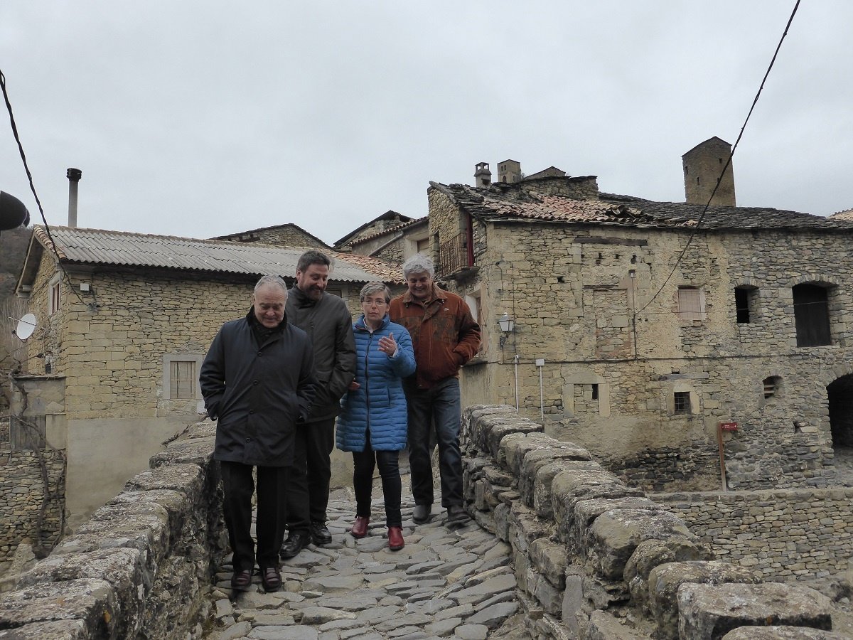 El consejero de Vertebración del Territorio, Movilidad y Vivienda del Gobierno de Aragón, José Luis Soro; el presidente de la Diputación Provincial de Huesca (DPH); el alcalde de Puente de Montañana, Javier Bergua; la presidenta de la Comarca de la Ribagorza, Lourdes Pena, así como alcaldes de la zona y miembros del Patronato de la Fundación Montañana Medieval, de la Obra Social de Ibercaja, del Obispado de Barbastro y de PRAMES, entre otros, han visitado hoy este núcleo.