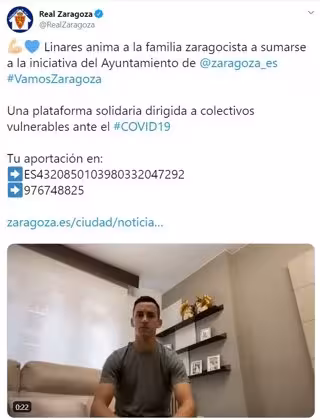 El delantero centro del Real Zaragoza, Miguel Linares, se suma a la campaña para combatir el coronavirus - AYUNTAMIENTO DE ZARAGOZA
