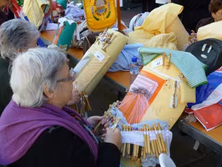 Cerca de 500 encajeras participaron este domingo en el XVIII Encuentro de Encaje de Bolillos que forma parte del programa de actos que durante la segunda quincena de abril han organizado las delegaciones de Fiestas, Cultura y Turismo del Ayuntamiento de Fraga con motivo del Día de la Faldeta.