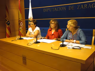 La presidenta de la Comisión de Cultura de la Diputación Provincial de Zaragoza (DPZ), Inmaculada de Francisco, la alcaldesa de Caspe, Pilar Herrero, y la directora artística de las farsas, Marián Pueo, han presentado en rueda de prensa las actividades de las fiestas, que atraen cada año a más de 7.000 personas.