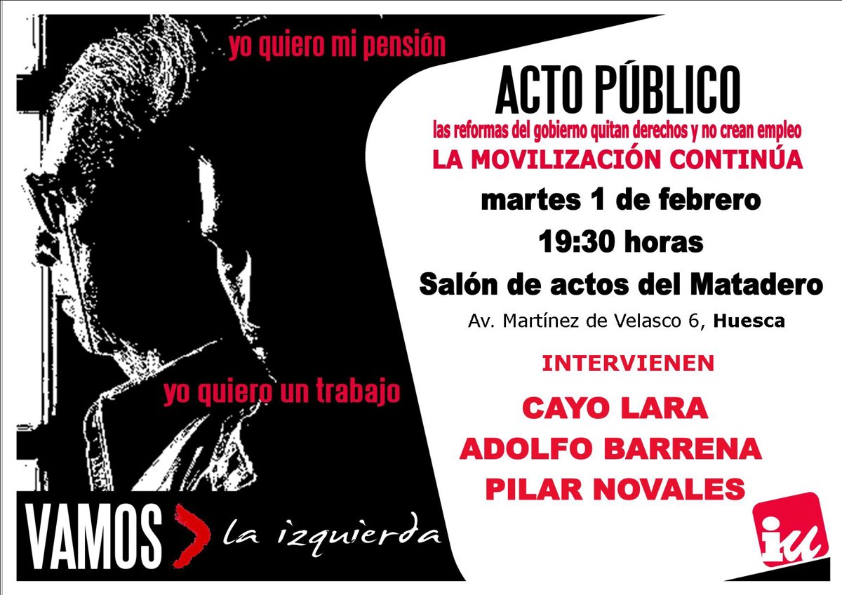 Se trata de un acto público en el Centro Cultural del Matadero y en el que también participarán el coordinador general de IU de Aragón y candidato a la presidencia del Gobierno de Aragón, Adolfo Barrena, y la coordinadora de IU Huesca-La Hoya y candidata a la Alcaldía de Huesca, Pilar Novales.