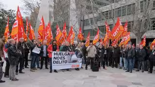 Estas movilizaciones tienen lugar con ocasión del inicio del juicio contra estos ocho trabajadores este martes. Los participantes se han congregado tras una pancarta en la que se leía 'Huelga no es delito', además de portar carteles que defendían este derecho y de corear, al finalizar el acto, 'Somos miles, no somos ocho' y 'Libertad sindical'.