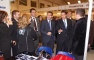 Antes de inaugurar y recorrer la feria, el consejero de Industria e Innovación ha mantenido un encuentro con la Asociación de Comercio e Industria de Calamocha.
