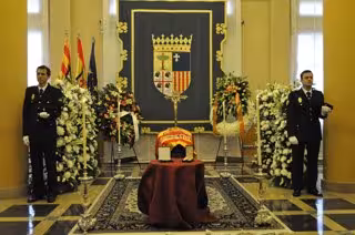 Junto al féretro, con sus restos mortales, la Medalla de Aragón que recibió Emilio Eiroa en 2005, y la Medalla de las Cortes.