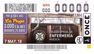 El centenario del Colegio Oficial de Enfermería de Huesca será el protagonista del cupón de la ONCE del lunes, 7 de mayo, con una imagen de la sede oscense del colegio, ubicado en la avenida Juan XXIII de la capital oscense, que ilustra el motivo de los cinco millones y medio de cupones que se venderán en toda España.