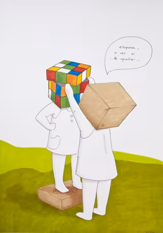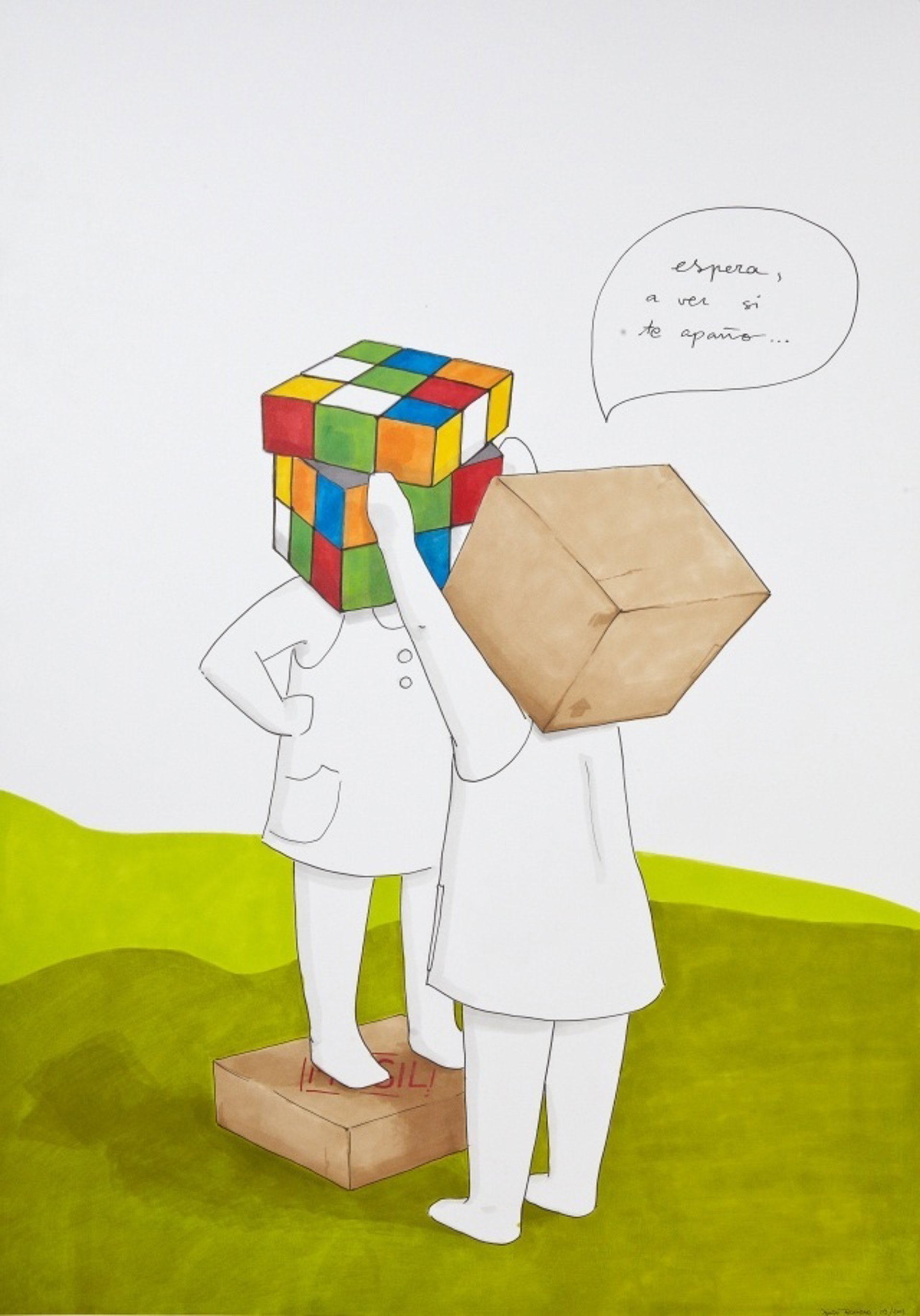 En las piezas que han integrado la muestra se utiliza la ironía, la sátira y el absurdo como herramientas para hacer reflexionar al espectador.