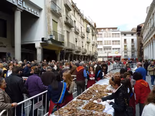 La decena de hornillos en los que los voluntarios los elaborarán estarán trabajando desde primera hora, coordinados por el grupo cultural Tradiciones, organizador de esta fiesta con el patrocinio del Ayuntamiento de Barbastro, la Comarca del Somontano, el área de Comercio de la Asociación de Empresarios de Barbastro y una veintena de establecimientos. La jornada estará amenizada por los Dulzaineros de Barbastro.