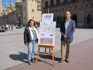 El portavoz de CHA en el consistorio, Carmelo Asensio, y la secretaria del Ligallo de Redolada de Zaragoza de CHA, Carmen Alloza, han presentado a los medios de comunicación, en la plaza del Pilar de la capital aragonesa, este proceso que recogerá las sugerencias de los ciudadanos, hasta el 9 de junio, en la página web 'www.participachunta.org/maszaragoza'.
