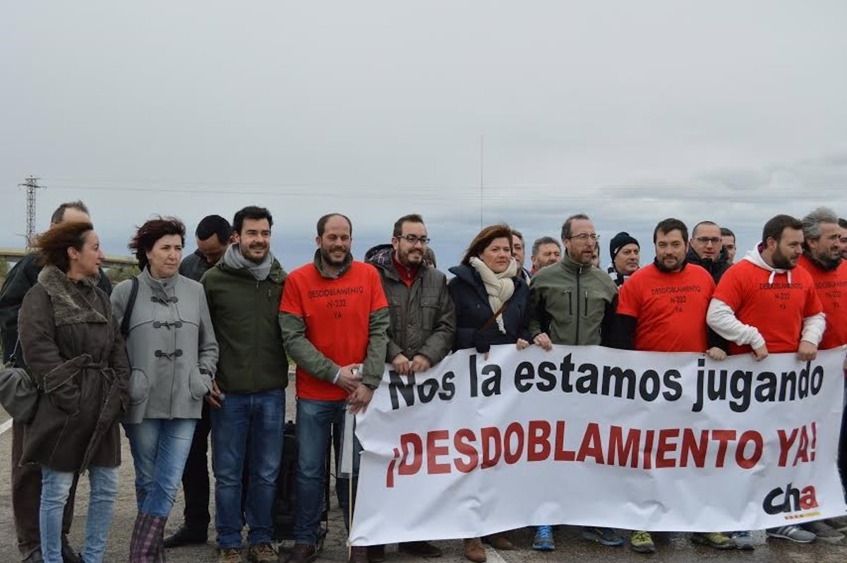 Chunta Aragonesista (CHA) ha realizado este sábado, 27 de febrero, una protesta en la N-232 para reivindicar el desdoblamiento de la citada vía ante la "paralización" de las obras.
